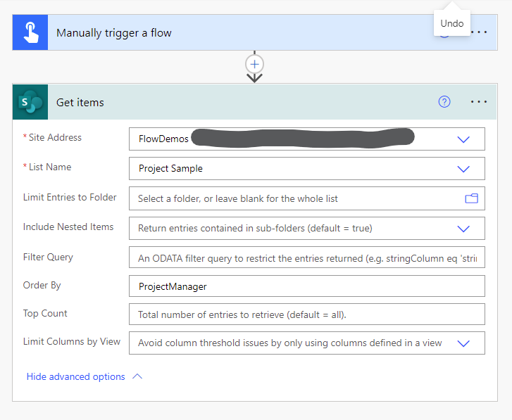 Step#1 – Retrieve the records from data source. Sort them based on the field that references the person, in this case Project Manager. This will not work if the field includes multiple people. Here’s a screenshot of that part of the flow.