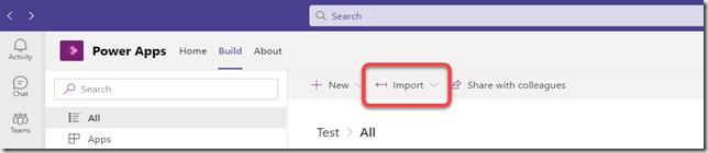 This post is a week overdue. I was in Seattle last week to present 2 workshops and 3 talks. One of the workshops and one of the talks was on how to use Dataverse for Teams. Many of the attendees asked if they could have a copy of the demos that I used during the talks. Below you will find a link to the solution that you can import into Power Apps in Teams to have copies of the Power App, Power Virtual Agent Bot, and Power Automate flows in the demo. You can import the solution using the Power Apps client inside Teams. Navigate to the Build Tab and select the See All link.